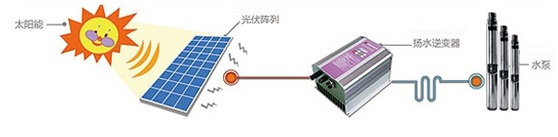就是通過太陽能產生的直流電或轉換成交流電來帶動水泵工作,可以獨立于電網之外。直流目前只能限制在小功率,而交流水泵功率從幾百W到幾十KW都有,當然揚程和流量都可以直流水泵大的多,可以用于大規模農業灌溉等。