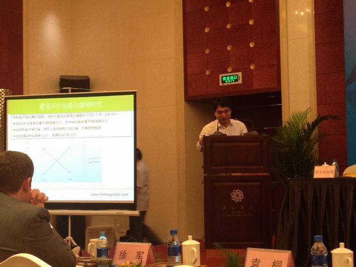 圖為北京合能陽光新能源技術有限公司總經理肖宗杰作了《微利時代下的藍寶石品質控制》的專題演講 。